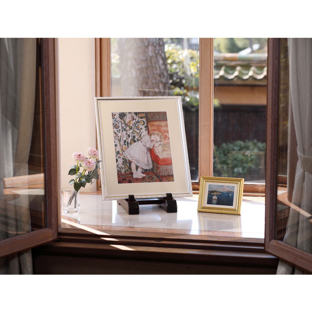 絵葉書にエンボス加工したものと額をセット。お好きなところにすぐに飾ることができます。