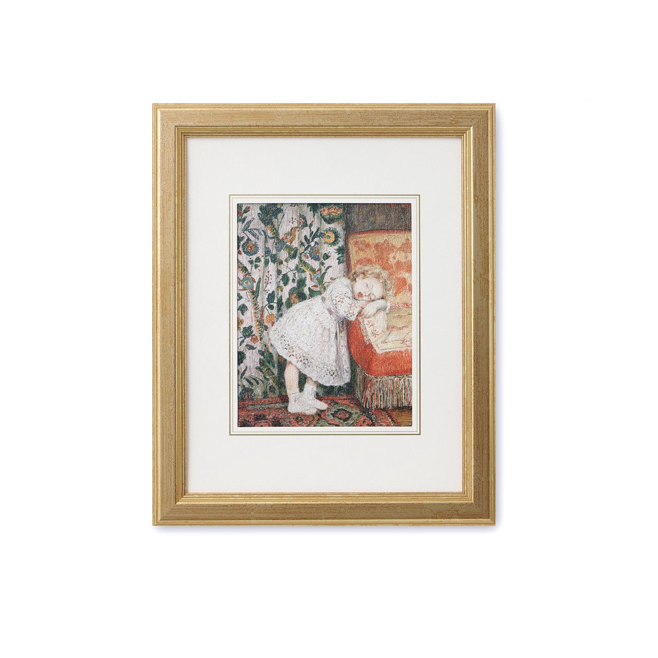 紙へ印刷した複製をエンボス加工し、額にセットしています。
